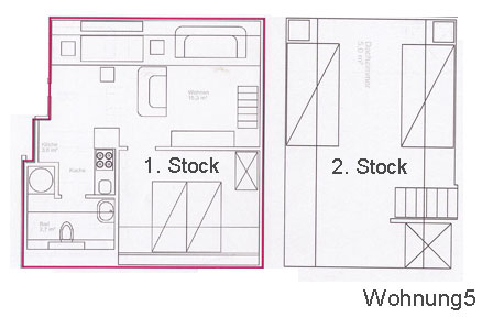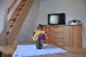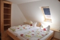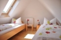 Das zweite Schlafzimmer ist über eine steile Treppe vom Wohnzimmer aus erreichbar und hat zwei getrennte Betten.