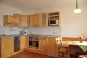In der Wohnküche ist eine Couch und eine Küchenzeile mit Essecke,